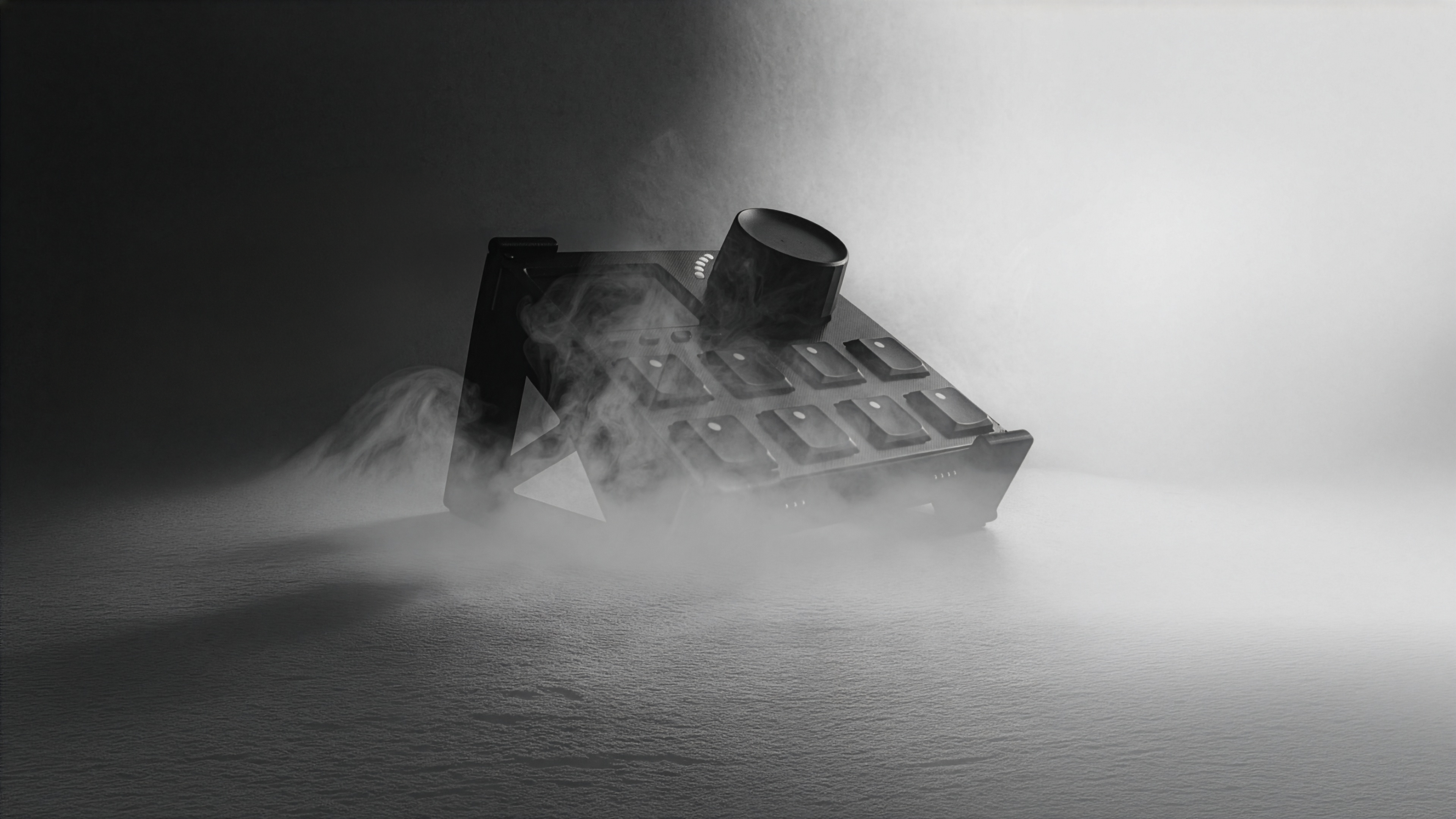Productivity controller with an LCD screen, a precise jog wheel and Hall effect key switches.